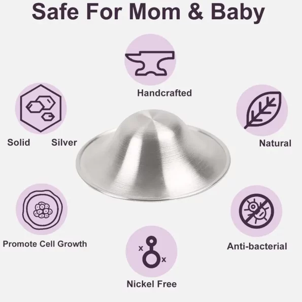 Made from pure healing silver, these nipple covers are lightweight, smooth, and comfortable against the skin. Silver has long been valued for its natural soothing properties, making these shields an excellent option for moms experiencing tenderness, irritation, or sensitivity while nursing.