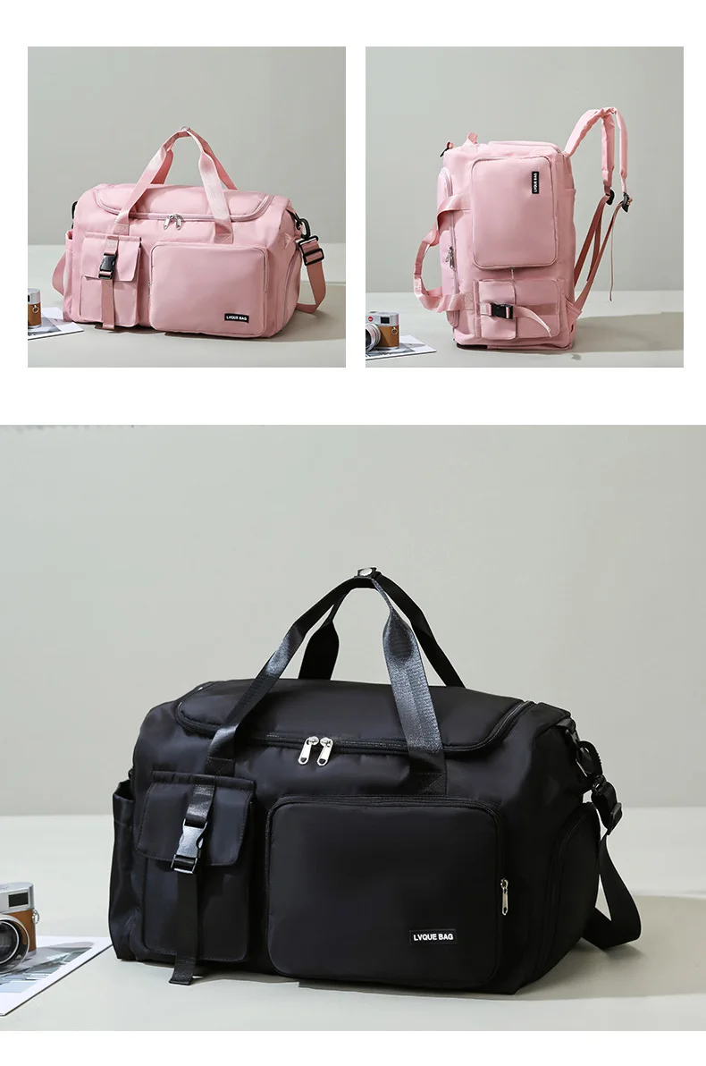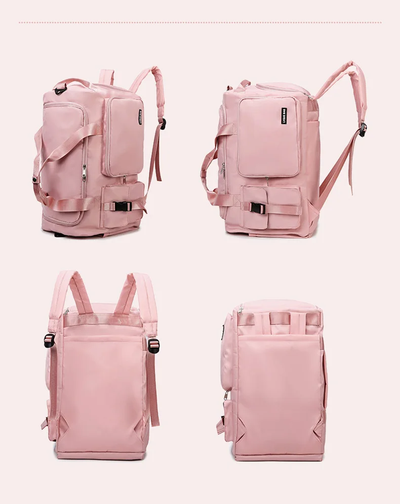 Stay organized and stylish with this women’s waterproof gym and travel bag, designed with a separate shoe compartment, wet/dry pockets, and multiple storage sections. Made from durable nylon, it’s lightweight yet spacious—perfect for the gym, yoga, weekend trips, or daily use. Features include a trolley sleeve, convertible backpack straps, and a detachable shoulder strap for versatile carrying. Ideal for fitness, travel, and outdoor adventures.