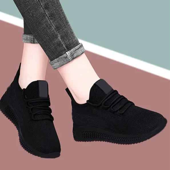 Step into comfort and style with these women’s breathable platform sneakers. Designed with a non-slip sole for all-day stability, these casual running shoes bring you the perfect mix of fashion and function. The lightweight mesh keeps your feet cool, while the cushioned insole supports every step. Ideal for walking, jogging, travel, or daily wear, these trendy Korean-style black sneakers pair effortlessly with jeans, leggings, or casual outfits. A must-have women’s fashion shoe for 2024 autumn.