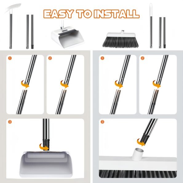 Broom and Dustpan Set with Brush – 3 Piece Cleaning Tools for Home