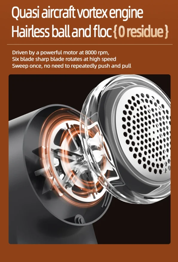 Keep your clothes looking fresh and new with this USB rechargeable electric lint remover, designed to remove fabric pills, fuzz, and hair balls quickly and safely. Powered by a high-speed motor and equipped with a stainless steel 6-leaf blade, it delivers efficient trimming without damaging your garments.