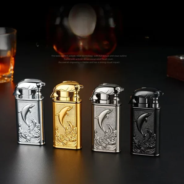 Add style and power to your collection with this embossed Shenlong double flame gas lighter, crafted from durable metal with a bold, trendy design. Perfect for everyday use or as a collectible, this refillable lighter delivers strong flame performance and a fashionable look.