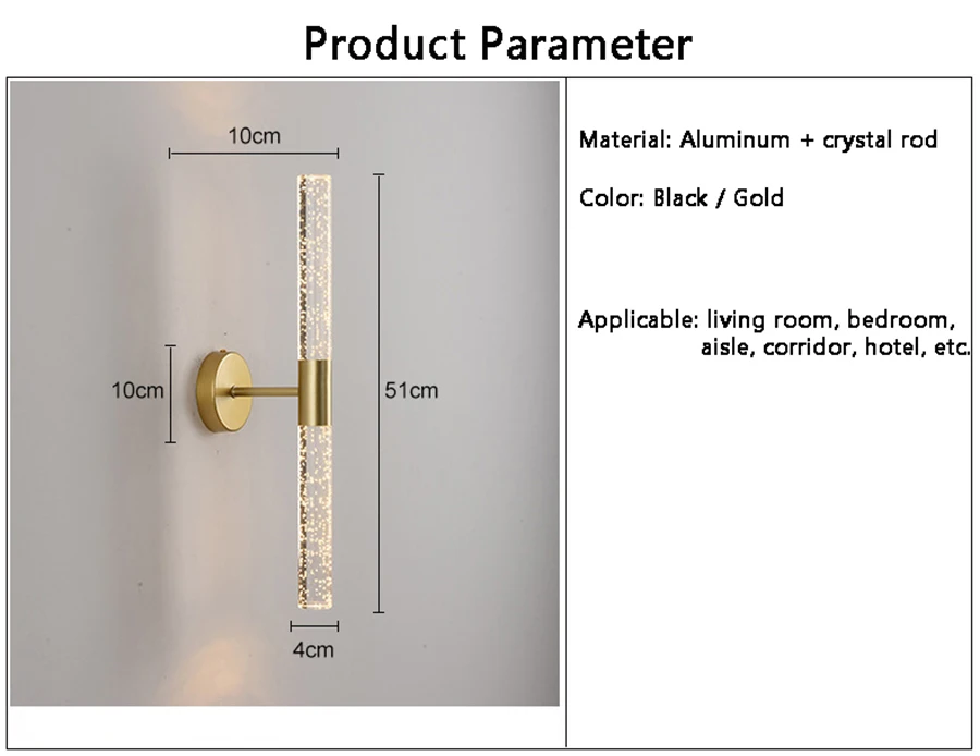 Transform your interior with the refined glow of this Nordic crystal rod LED wall lamp, designed to bring modern elegance and soft ambient lighting to any space. The unique bubble-style crystal rods beautifully diffuse light, creating a warm, inviting atmosphere without harsh glare.