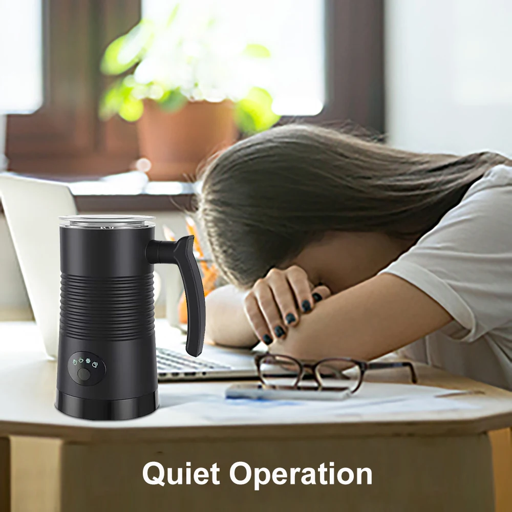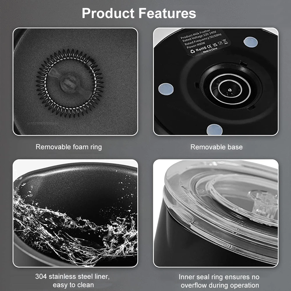 One-Button Control:Electric milk frother makes cold lightly frothed milk, hot lightly frothed milk, hot thick foam, and warm milk at the touch of a button.