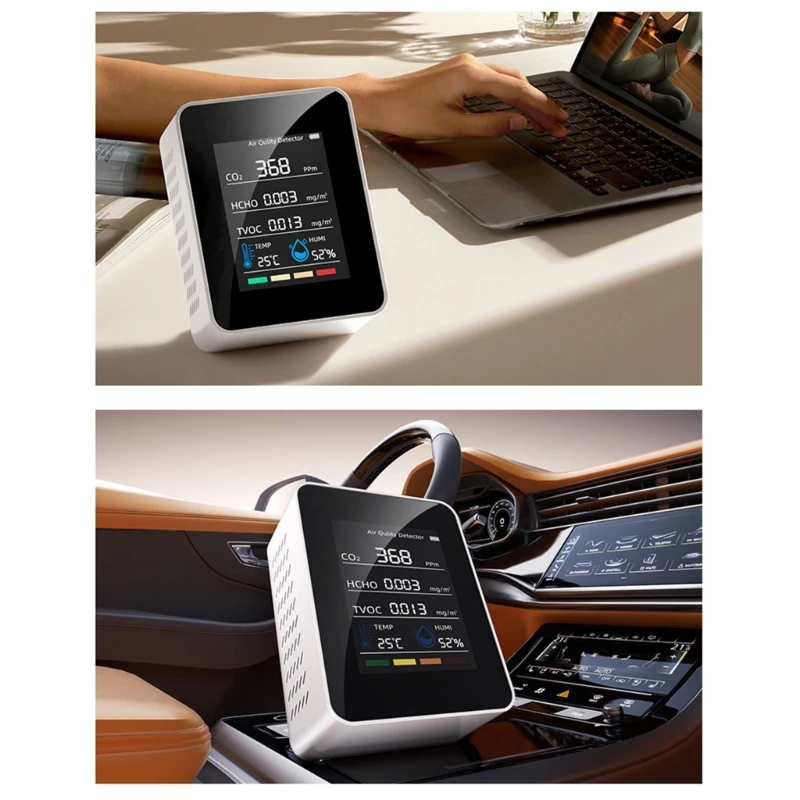 Breathe easy and stay in control with this compact 5-in-1 air quality monitor. It tracks CO2 levels, TVOC, temperature, and humidity to give you a clear picture of your indoor air. Great for bedrooms, offices, and any space where air quality matters.