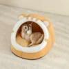 Cozy plush cat and small dog bed with cave-style design, soft cushion, and enclosed warmth—perfect for keeping pets comfortable and secure in any season.