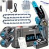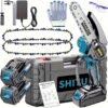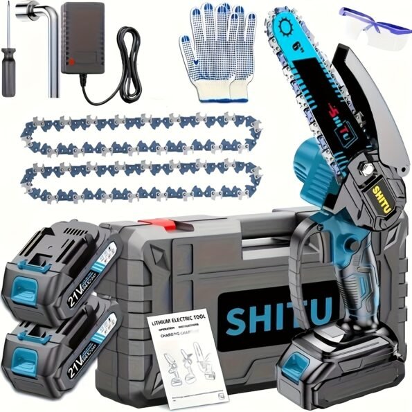 Powered by a 2000mAh rechargeable lithium battery, this mini chainsaw offers: