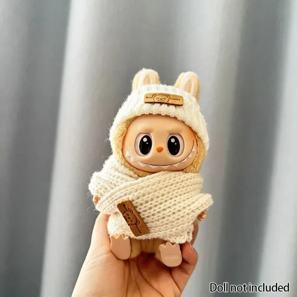 Dress up your 15-17cm Labubu doll in the cutest way possible with this adorable outfit set – perfect for collectors and doll lovers! This stylish set includes a soft shirt, cozy scarf, cute hat, and mini bag – everything your little Party Bear needs to shine.