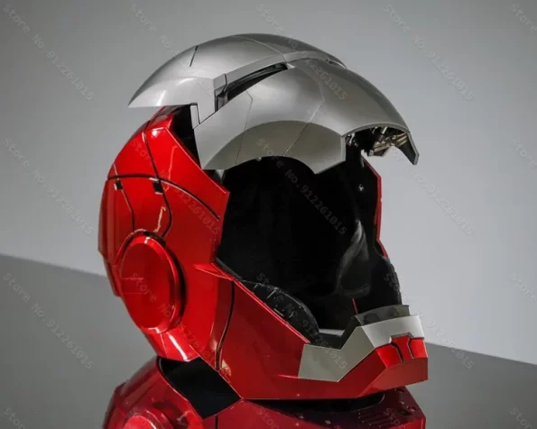 Iron Man Helmet Mk5 Electric Voice Activated Control and touch sensor activation, giving you the same futuristic feel as seen in the movies. Equipped with LED eyes that glow an intense white-blue, it brings the suit to life instantly.