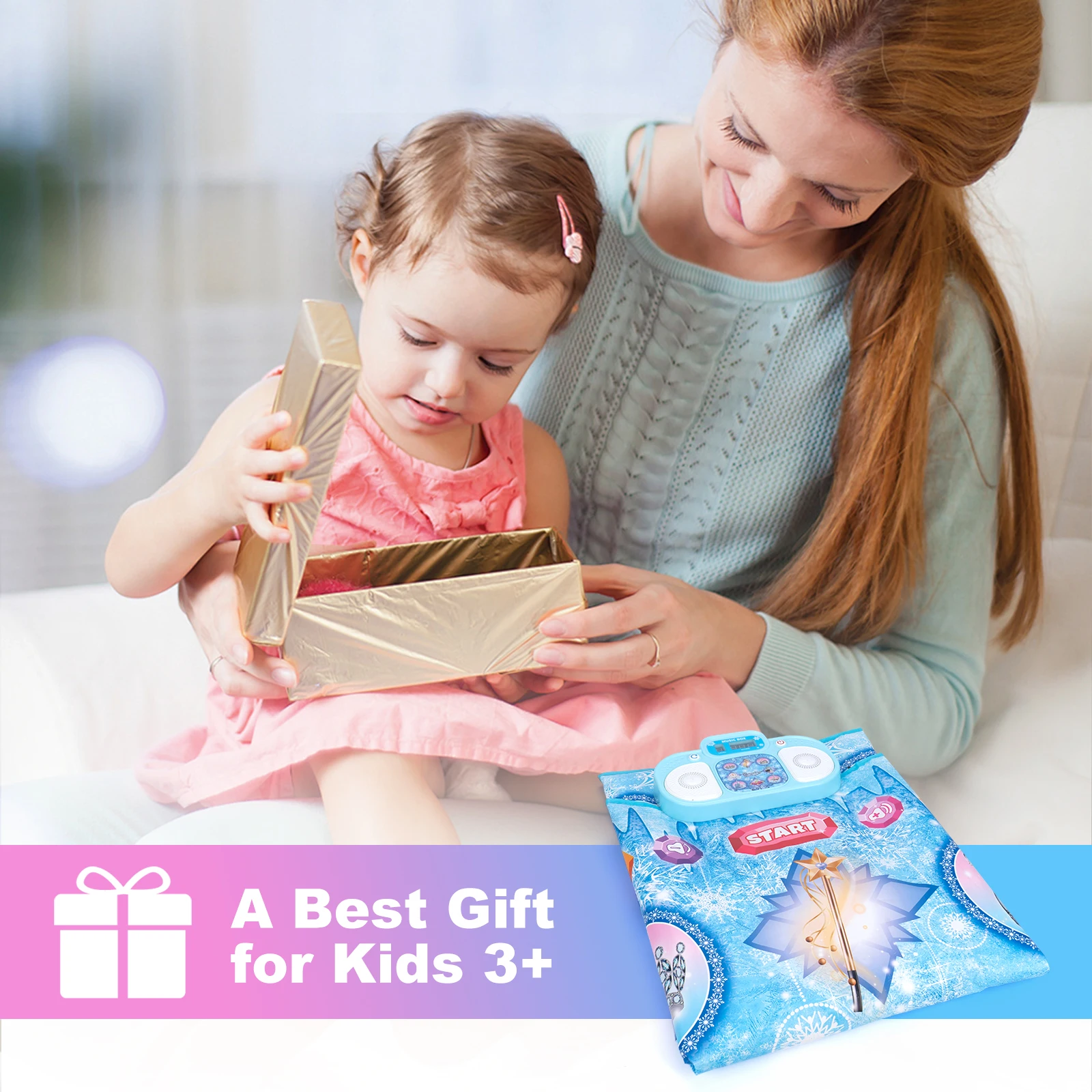 Kids Electronic Dance Mat with 9 difficulty levels, LED lights, memory & battle modes. Fun, educational, non-slip music dance game for kids 3+. Perfect gift idea.