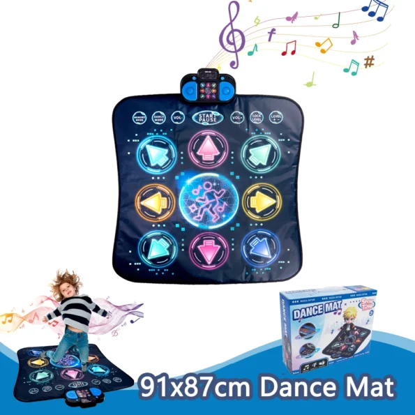Kids Electronic Dance Mat with 9 difficulty levels, LED lights, memory & battle modes. Fun, educational, non-slip music dance game for kids 3+. Perfect gift idea.