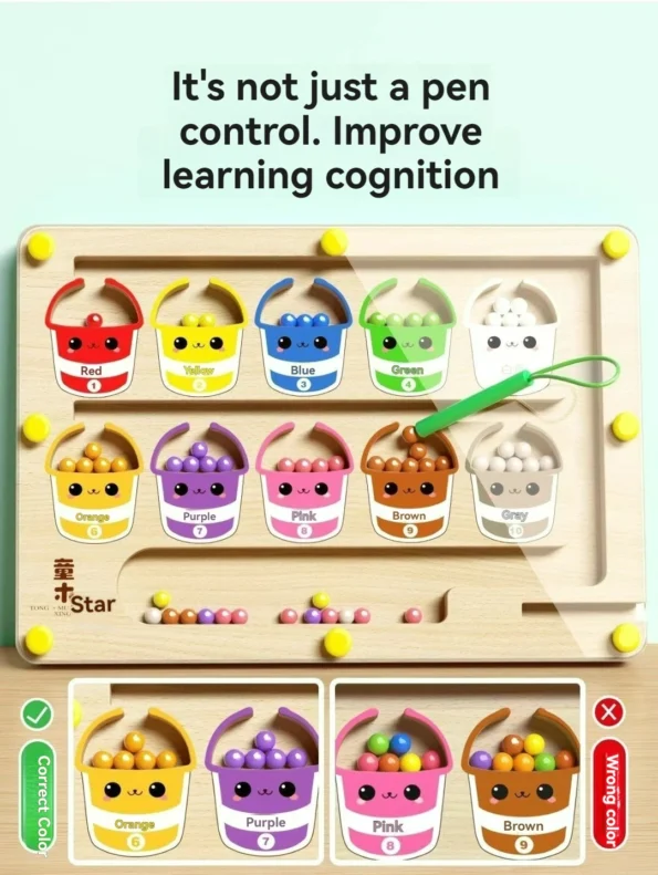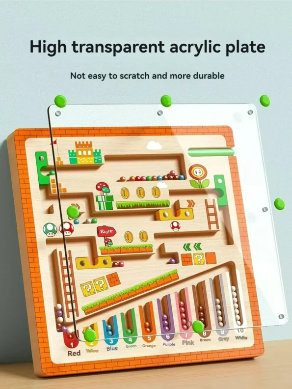 Designed with Montessori learning principles, the maze offers multiple difficulty levels. Beginners can guide beads through simpler paths, while advanced learners can navigate more complex routes that improve hand-eye coordination, precision, and logical thinking.