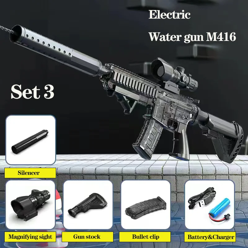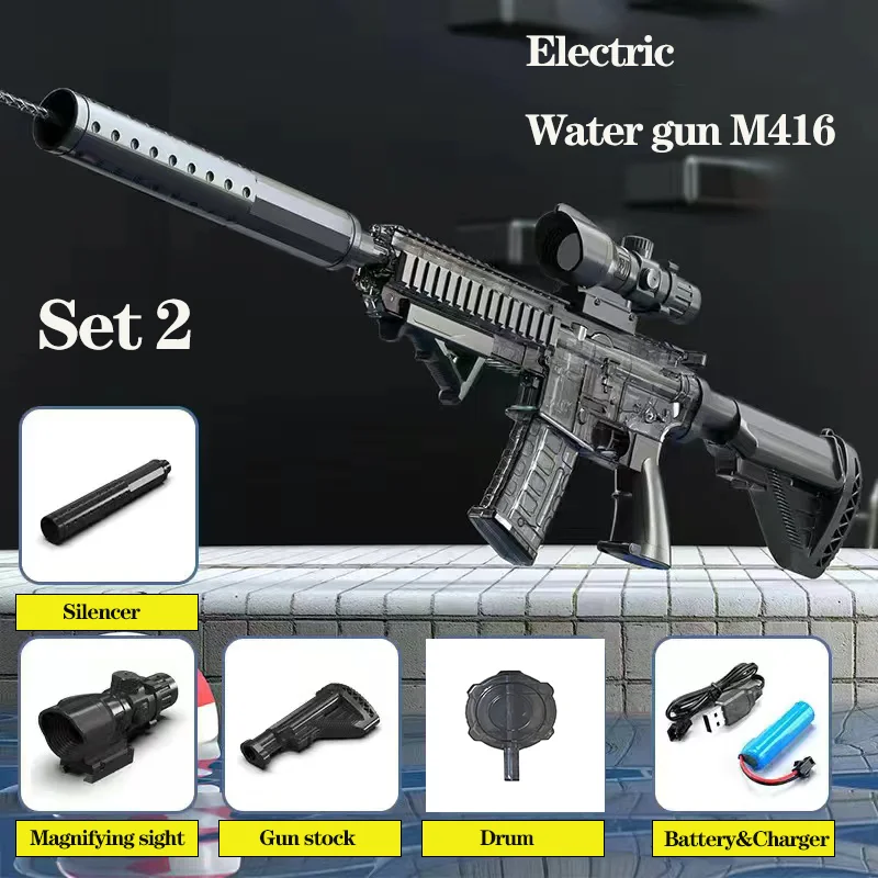 Turn any sunny day into an adventure with this M416-Style Electric Water Gun, designed for fast, full-automatic water blasting fun. With its modern tactical look and powerful electric motor, this water gun delivers a smooth, continuous stream—no pumping required—which makes it exciting and easy for kids and adults to enjoy.
