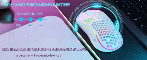 2.4G Wireless Mouse with RGB Backlit 6-button 3-speed DPI Type C Rechargeable Ergonomic Honeycomb Design Gaming Mouse 2.4G Wireless Mouse with RGB Backlit 6-button 3-speed DPI Type C Rechargeable Ergonomic Honeycomb Design Gaming Mouse