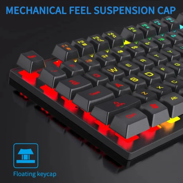 The mechanical keys provide fast, responsive feedback with a satisfying click—perfect for gaming and typing. Equipped with rainbow luminous backlighting, this keyboard enhances your gaming experience in low-light environments while giving your desk a stylish glow.